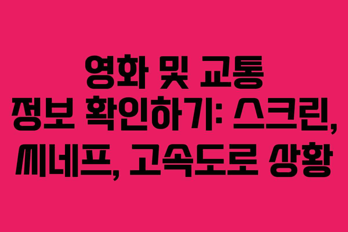 최근 다양한 영화 프로그램과 교통 정보가 제공되고 있어 많은 이들이 이를 확인하고자 합니다. 영화 채널인 스크린과 씨네프의 채널번호를 알고 싶거나, 고속도로의 실시간 교통 상황을 파악하고자 하는 분들에게 유용한 정보를 제공합니다. 각 통신사별 채널번호와 고속도로별 교통정보를 정확히 확인하는 방법을 소개합니다.