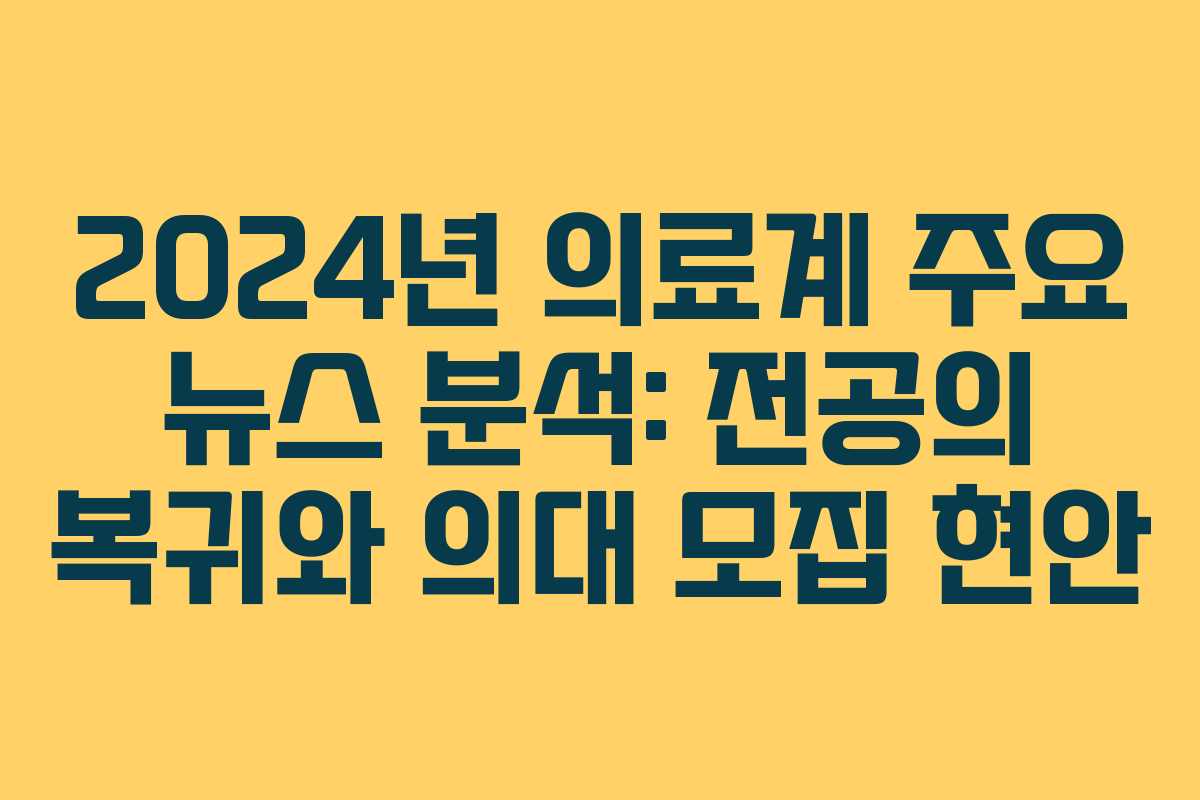2024년 의료계 주요 뉴스 분석: 전공의 복귀와 의대 모집 현안