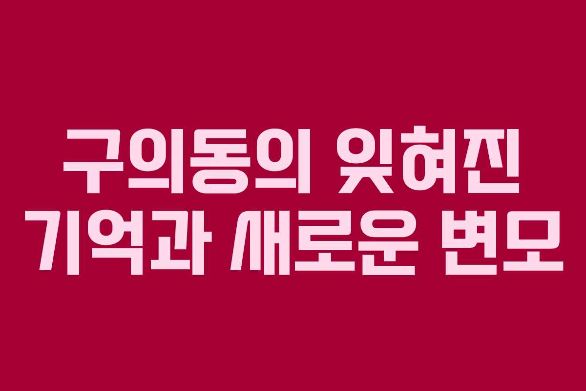 구의동은 과거와 현재가 교차하는 장소로, 많은 것이 변했습니다. 방지거병원이 사라지고 주상복합단지가 들어섰으며, 구의시장은 넓은 공원으로 대체되었습니다. 하지만 여전히 많은 기억들이 살아있습니다.