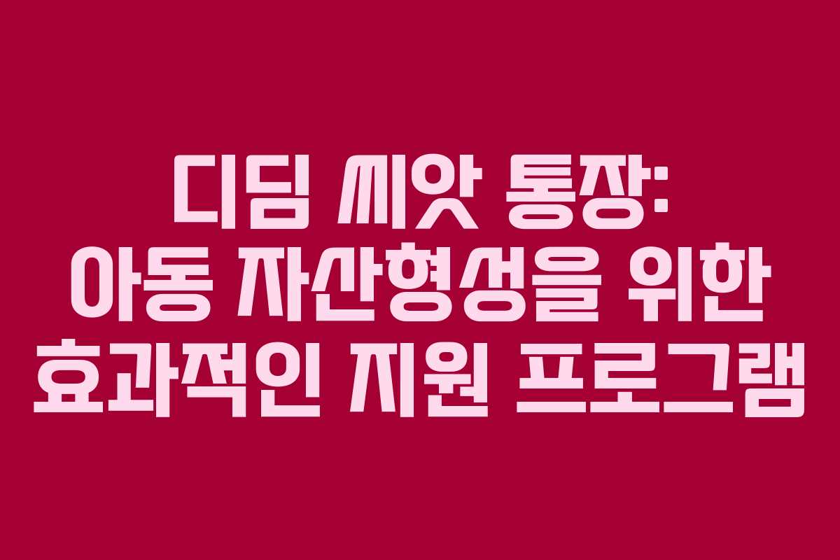 디딤 씨앗 통장은 취약계층 아동과 기초생활수급가구를 위해 설계된 정부의 자산형성 지원 프로그램으로, 아동이 안정적으로 자립할 수 있도록 돕는 중요한 사업이다. 이 프로그램은 아동이 미래를 준비하는 데 필요한 자산을 형성할 수 있도록 다양한 지원을 제공한다. 2026년 기준으로 이 통장은 더욱 강화된 정책과 지원으로 아동들의 자립을 돕기 위해 지속적으로 운영되고 있다.